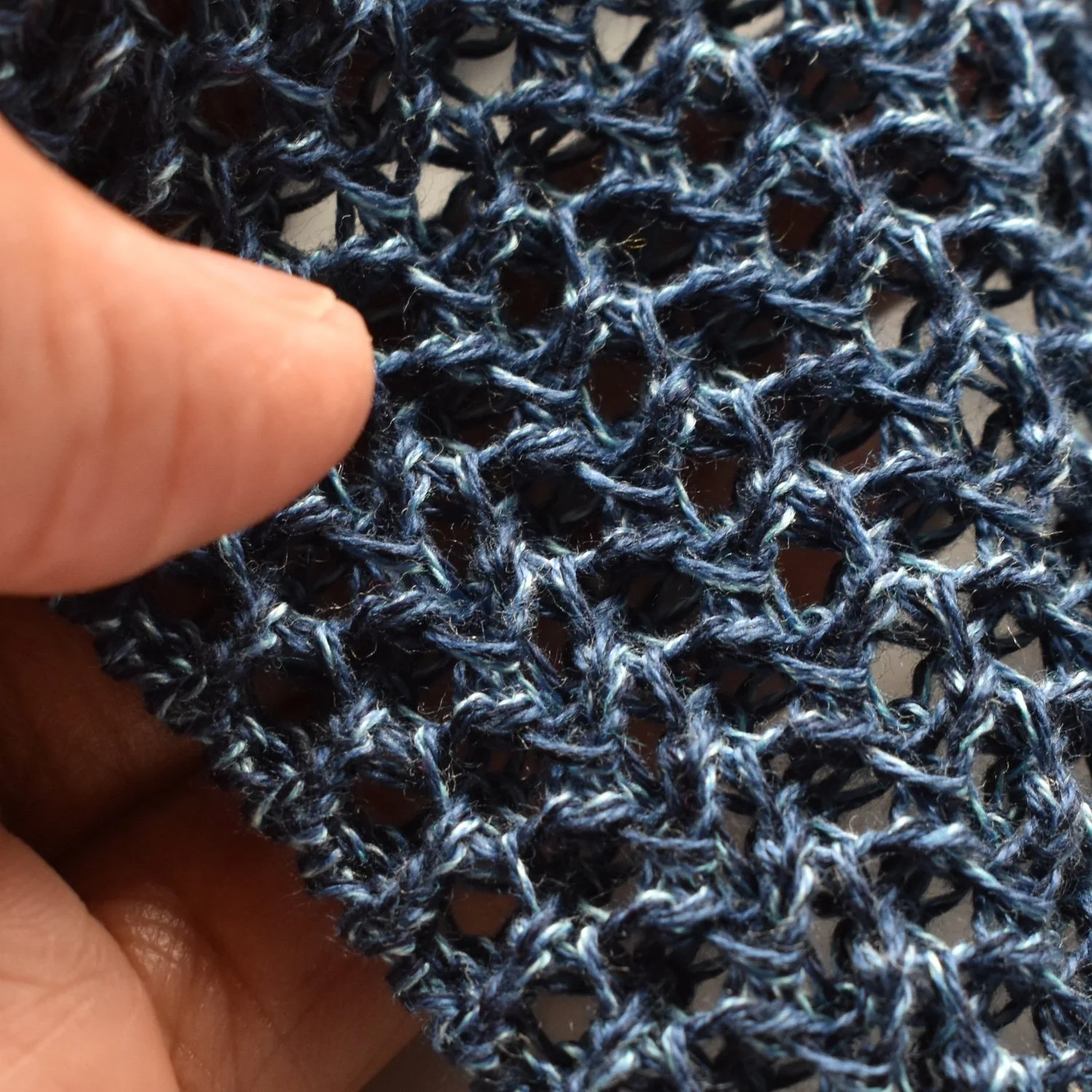 With each project I try to learn something new. With this stitch pattern my big accomplishment was getting the takedown just right when racking with the not-so-strong cotton. I also managed a successful bind-off with this untried mix of three different cotton yarns.